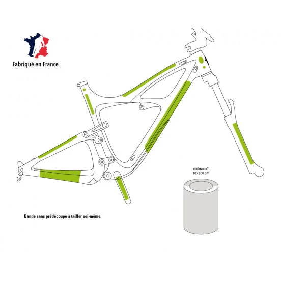 Le kit CoatUp VBR300 ‘Do it Yourself’ consiste en un longue bande sans prédécoupe à partir duquel on peut tailler des pièces soi-même pour personnaliser la protection de son vélo.