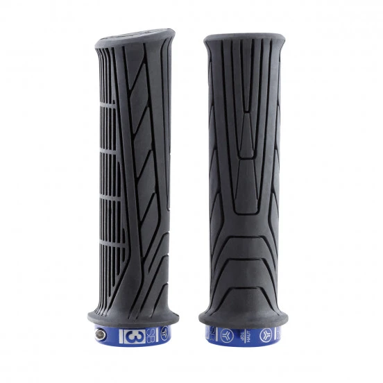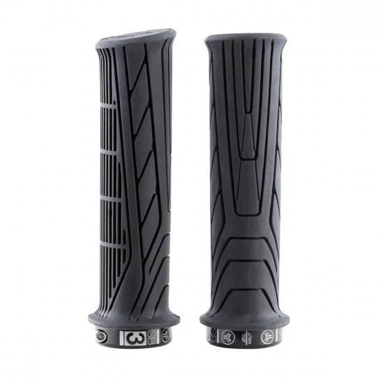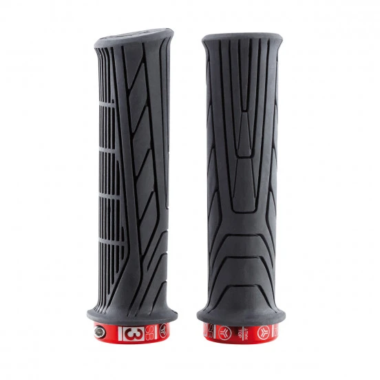 Les gros pads en haut du grip procurent du confort à la paume de la main, ils filtrent particulièrement bien les vibrations et les impacts. Les fines lamelles placées au contact des doigts offrent du grip et du moelleux. Le biseau et le léger évasement en bout de grip améliorent la prise en main. Enfin, le lock-on fixe le grip sur votre cintre, pour un ride en toute sécurité.