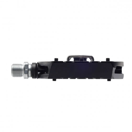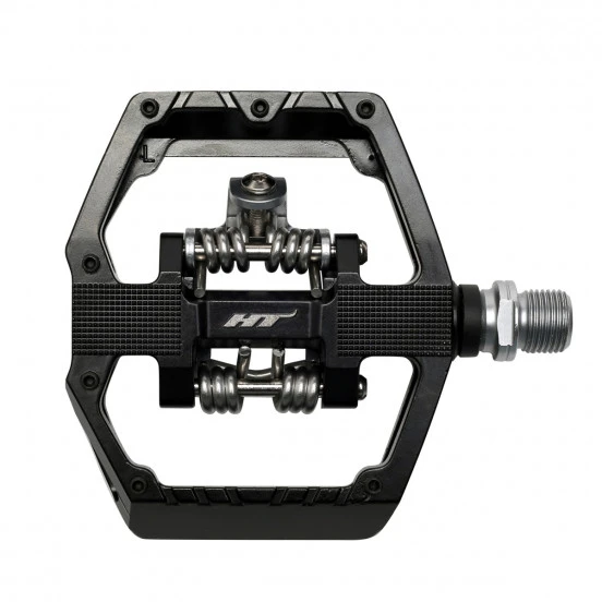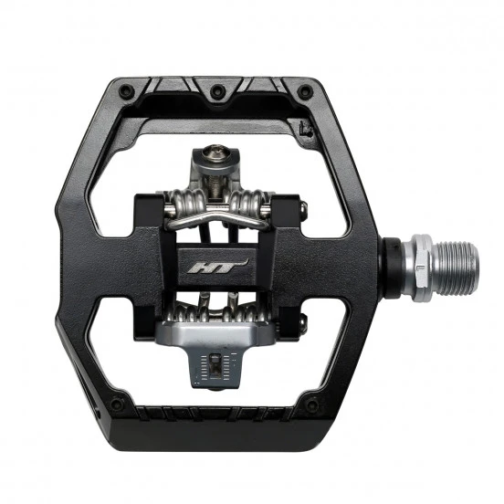 La pédale qui va vous faire aimer les pédales auto. D’un coté elle reprend la plateforme large de la pédale de descente X2 avec le système de cales auto HT en version X1E (compatible X1) encore plus facile à utiliser, aggrémentée de picots pour une meilleure tenue du pied. De l’autre, c’est une pédale plate, parfaite pour se sentir à l’aise dans les passages techniques, ou pour aller chercher le pain en tong ! C’est la pédale parfaite pour s’initier aux pédales auto ou pour les pratiques polyvalentes comme le VAE ou le city.