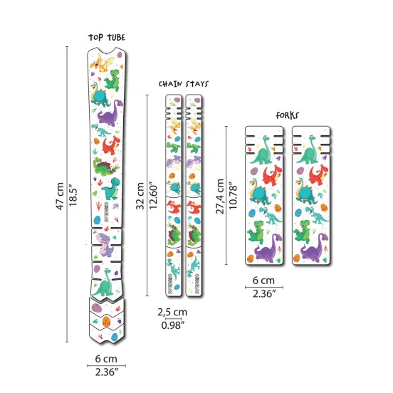 Adhésifs de protection vinyl transparent de 300 micron d’épaisseur, imprimés avec encres latex, prédécoupés pour s’adapter aux différents cadres vélos. Il peut être nécessaire de recouper certaines pièces avec une paire de ciseaux ou un cutter pour une parfaite adaptation au support.