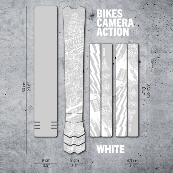 Adhésifs de protection vinyl transparent de 300 micron d’épaisseur, imprimés avec encres latex, prédécoupés pour s’adapter aux différents cadres vélos. Il peut être nécessaire de recouper certaines pièces avec une paire de ciseaux ou un cutter pour une parfaite adaptation au support.